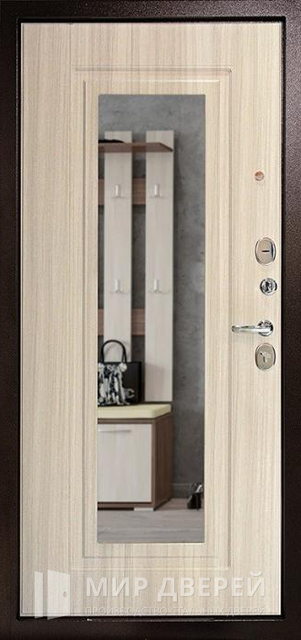 Наружная дверь со светлыми МДФ накладками №46, идеально подходящая для установки в частных домах, квартирах или офисах, предлагает элегантный дизайн в сочетании с высокой функциональностью. Внешняя и внутренняя отделка из МДФ с ПВХ покрытием в светлых тонах, включая белый, не только красиво смотрится, но и устойчива к внешним воздействиям, что делает дверь долговечной и легкой в уходе. Декоративное зеркало не только украшает дверь, но и приносит практическую пользу, визуально расширяя пространство.