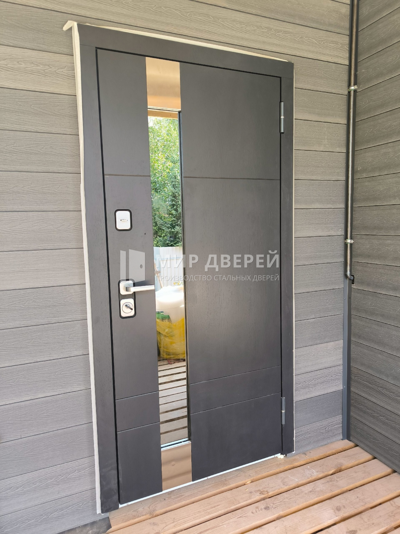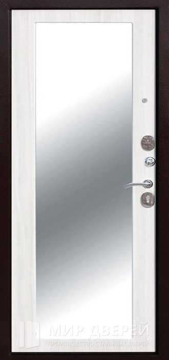 Металлическая дверь с зеркалом и порошковым напылением №2 предназначена для установки в частных домах, квартирах и офисах, где требуется сочетание функциональности и современного дизайна. Внешняя сторона двери обработана методом порошкового термонапыления, что обеспечивает долговечность и стойкость к коррозии, а внутренняя отделка выполнена из ламинированных панелей МДФ, доступных в различных цветах от тёмных до светлых тонов. Наличие зеркала добавляет эстетическую привлекательность и функциональность, делая дверь идеальной для использования в разнообразных интерьерах.